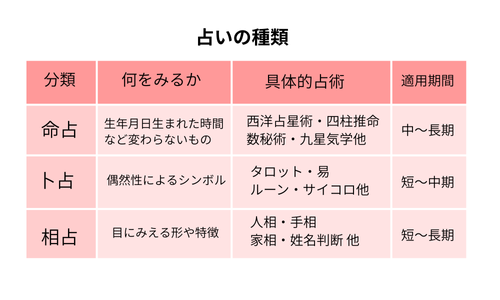 ご存知の方もいらっしゃると思いますが、ひと口に占いと言っても、「命占(めいせん)」と「卜占(ぼくせん)」、そして「相占(そうせん)」と分類されます。