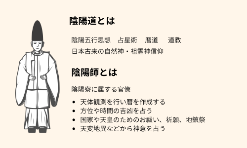 一方、陰陽師は陰陽寮に属する「国家公務員」で、陰陽道、天文学、暦学、のエキスパートとして国家の大事に関わる役目を果たしていたのですが、平安中期ごろから、貴族の私的相談役も兼ねて、占いや地鎮祭などを行うケースが増えました。